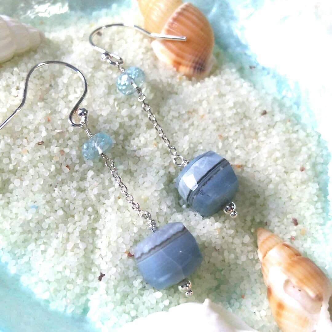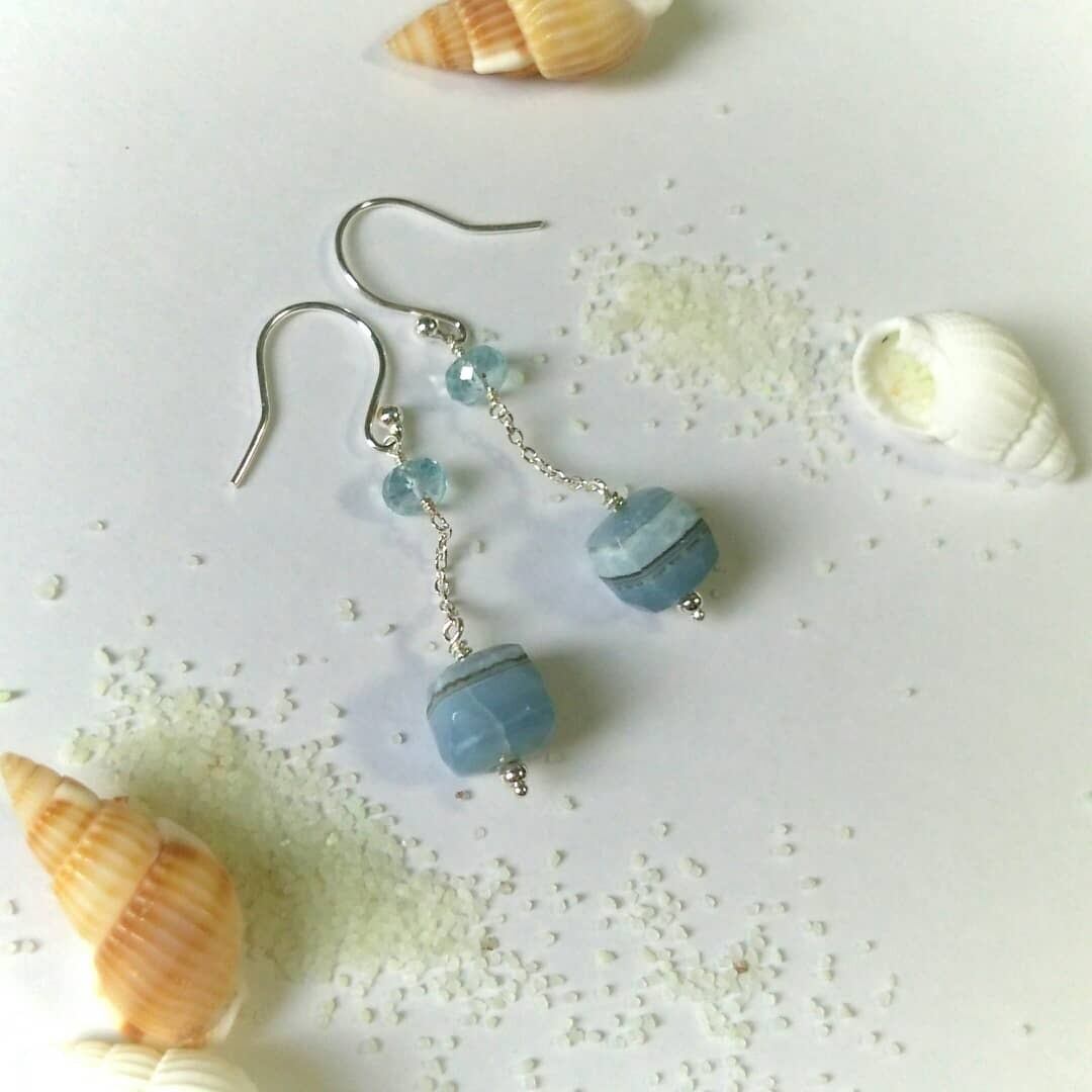 夏の海辺の景色のような色合いのストライプブルーオパールに夏の空のような透き通ったブルーのアクアマリン。