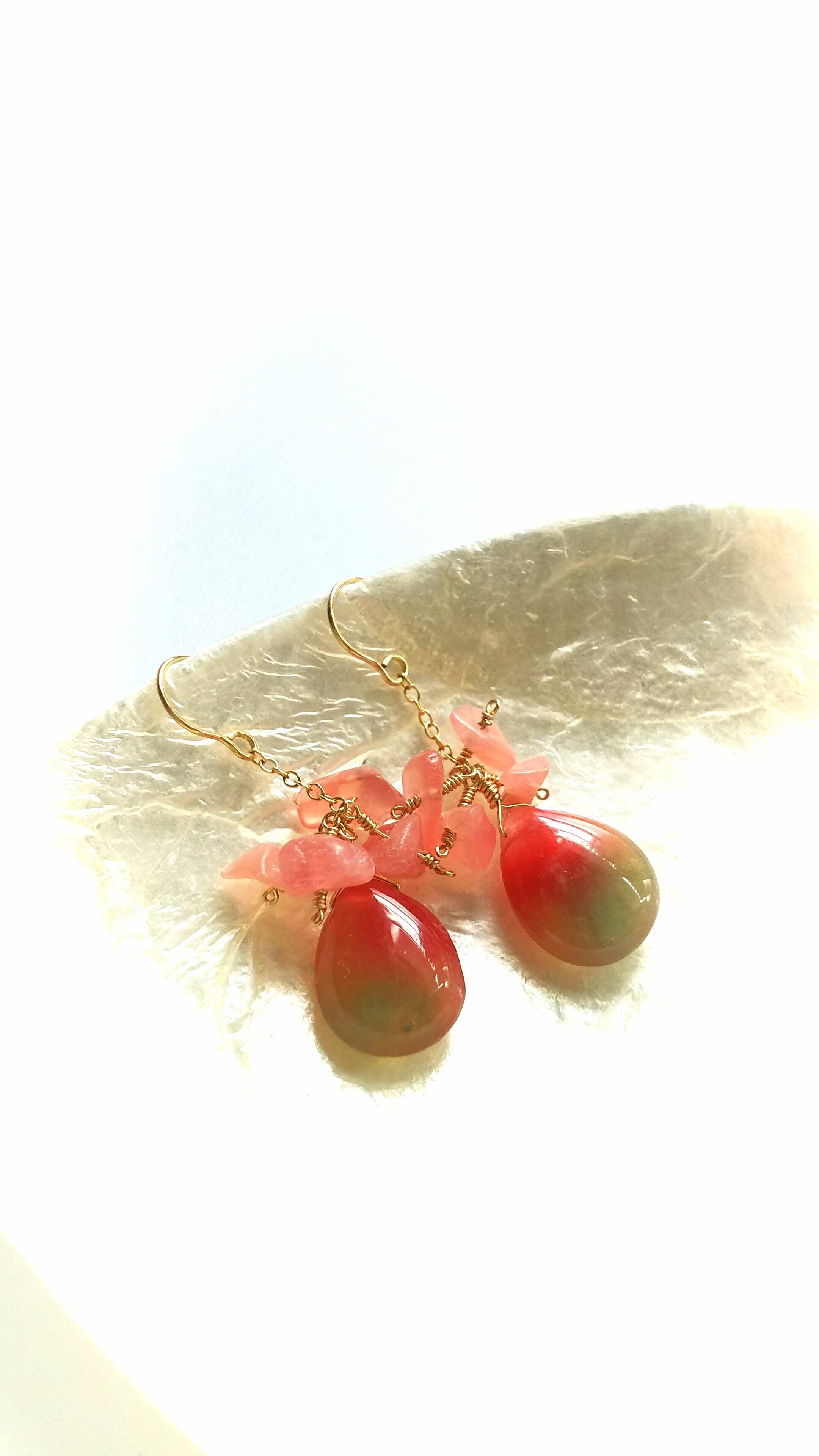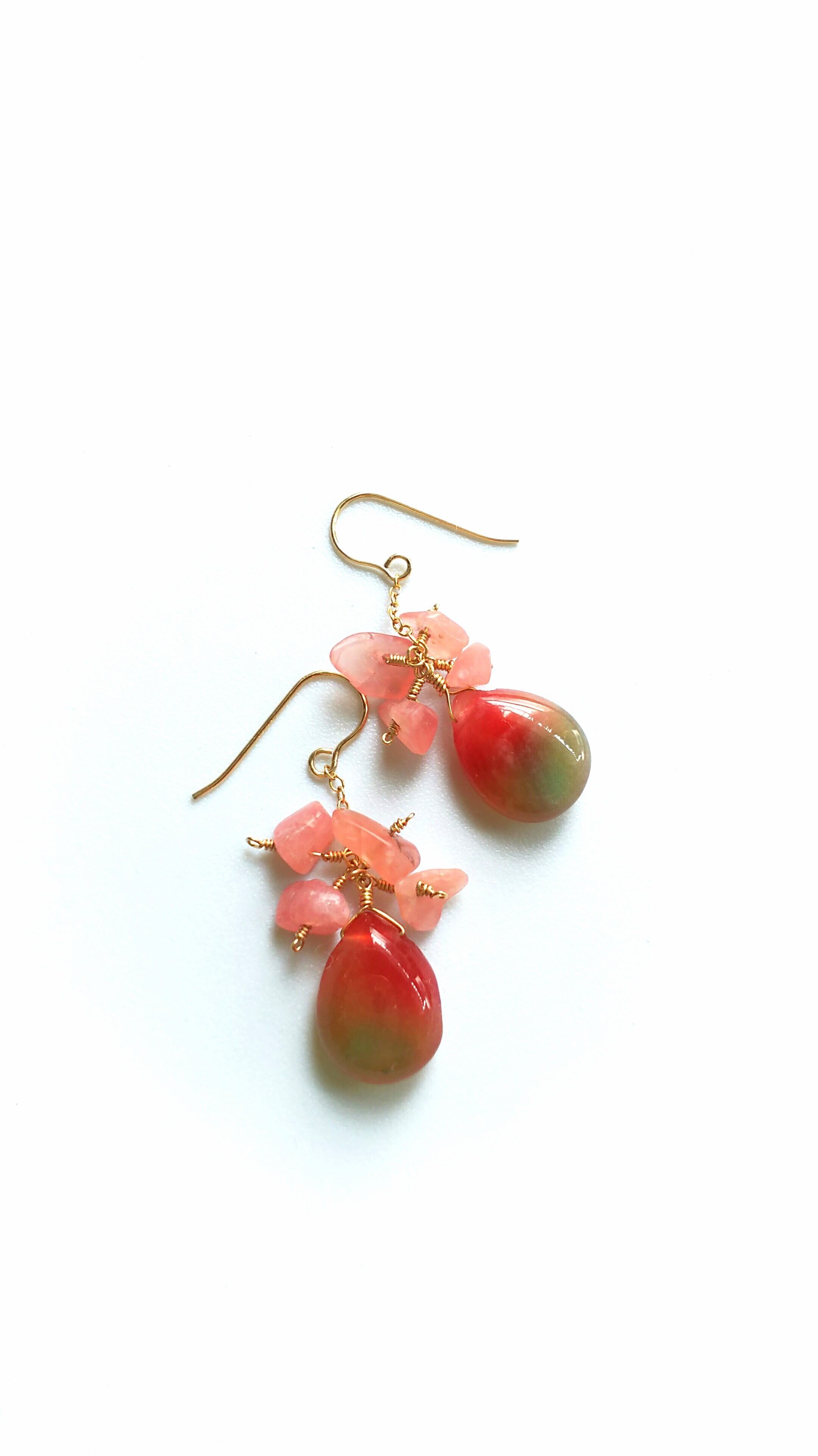 コロンとつやつやなビタミンカラーのカラージェードに優しいピンクのインカローズを添えました。