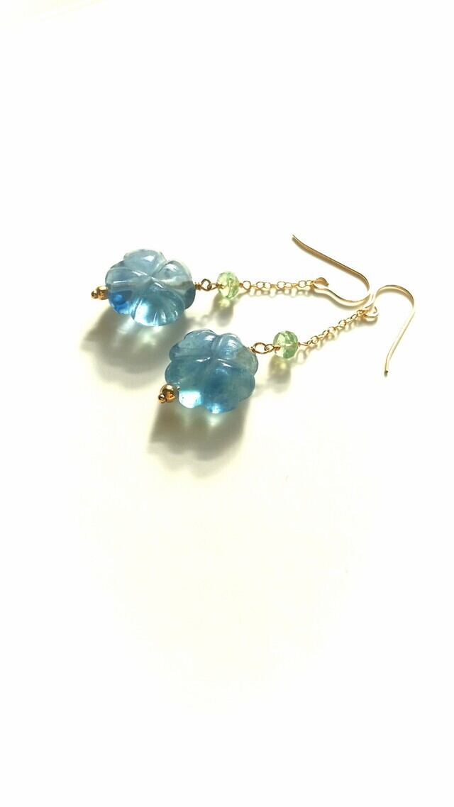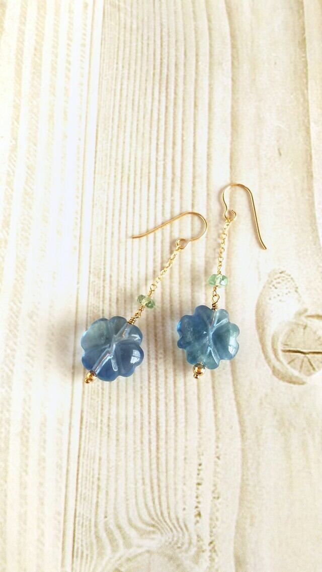 プックリとしたフローライトのクローバーに優しい色合いのグリーンカイヤナイトを一粒添えました。